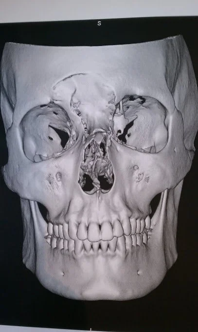 This poem originally appeared in Ritual Dagger Zine. You can check it out here. I wrote it for my friend Cameron who actually did get hit in the face with a baseball shortly after moving to Michigan. The image above is the X-ray from that.